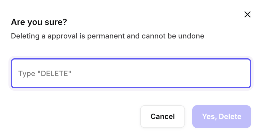 Hover over the respective workflow on the "Job Approval" homepage and click the delete icon.
