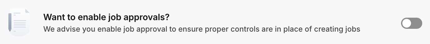 You will now be prompted to enable this feature by toggling the switch to activate job approval workflows for your organization.