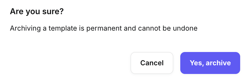 You can archive a template by clicking on the Ellipsis icon that appears when you hover over the respective section on the Templates homepage > Click on the Archive option > Complete the action by clicking on the Yes, archive button.