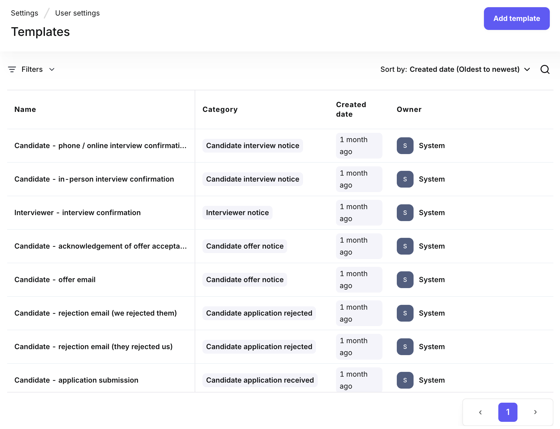 The Templates section in Kula provides ready-to-use email templates for various stages of the recruitment process. These templates are designed to ensure consistent and professional communication with candidates and interviewers.