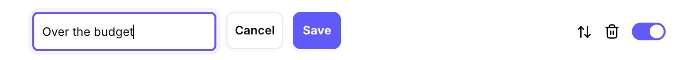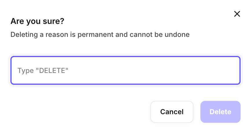 Note: These categories cannot be deleted, but you can add, edit, enable/disable, or delete custom reasons within them.