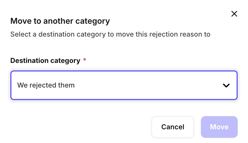 Note: The rejection reason will retain its enabled or disabled status in the new category.