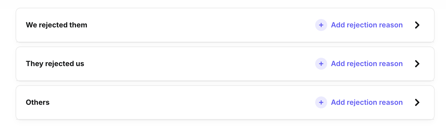 To add a rejection reason, click Add Rejection Reason under the relevant category.