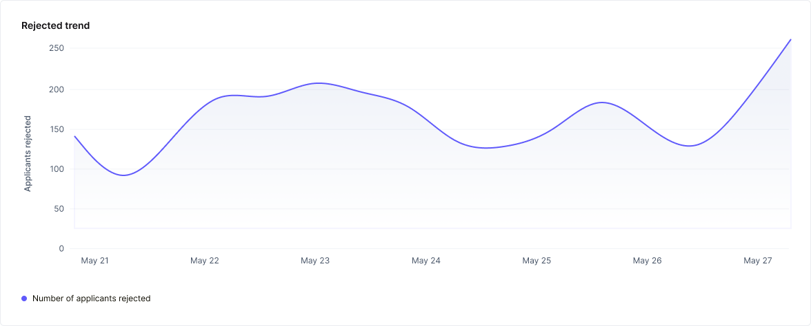 Rejected Applicants: This metric tracks the total number of candidates rejected within the selected timeframe, offering a clear picture of rejection trends in your hiring process.