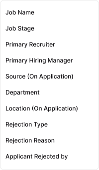Rejection Reason: Group data by specific rejection reasons, allowing you to identify the most common reasons for rejecting candidates and address potential issues in your hiring criteria.
