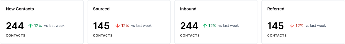 New Contact Trend by Source: A bar chart showing new contact trends over time, segmented by source, helps identify which channels contribute most to your contact pool.