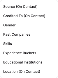 Source: Filter contacts by their acquisition source (job boards, referrals, etc.).