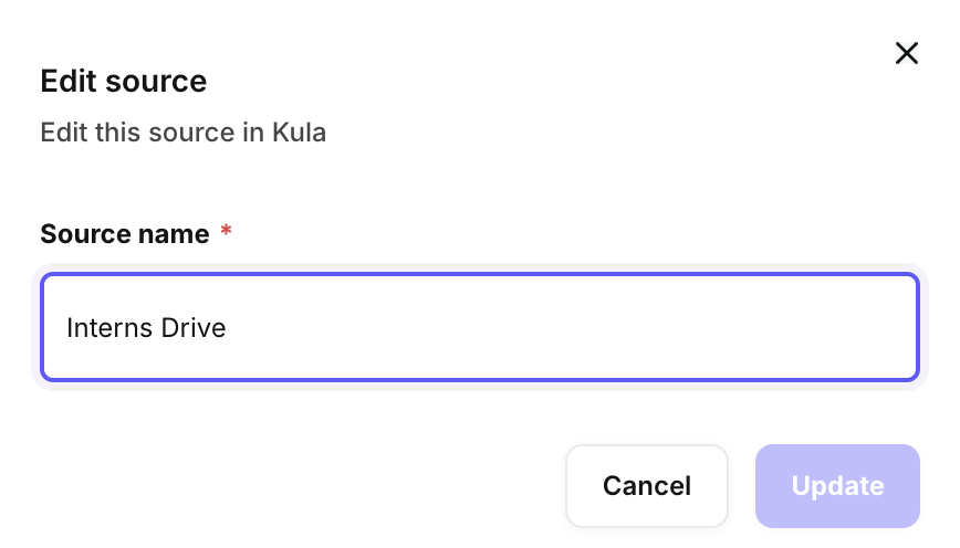 To edit and update a source’s name, hover over the section on the Candidate Sources homepage and click the Edit icon. Update the name as needed, then click Update to save your changes.