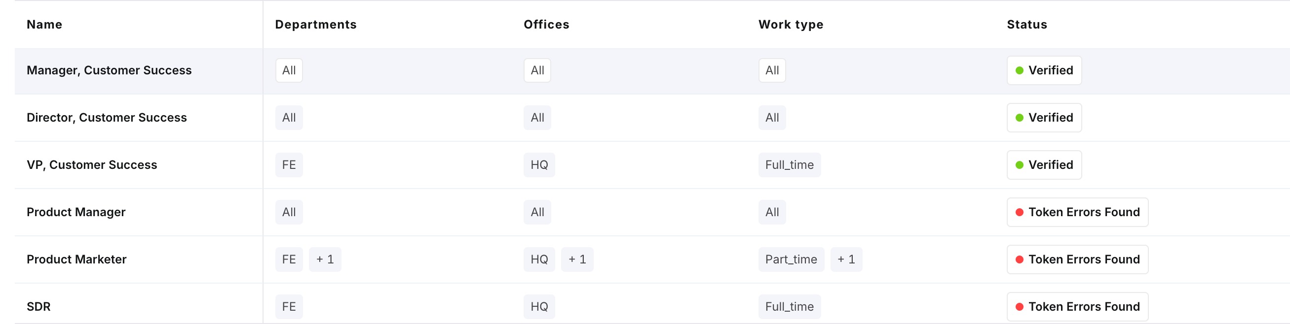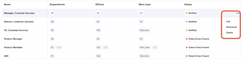 The new template will appear on the "Offer Letter Templates" homepage. In the "Status" column, you’ll be able to see if the template has been verified with no token errors or if it contains any errors.