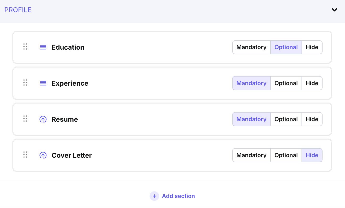 You can reorder fields in the Personal Information and Profile sections by dragging and dropping them.