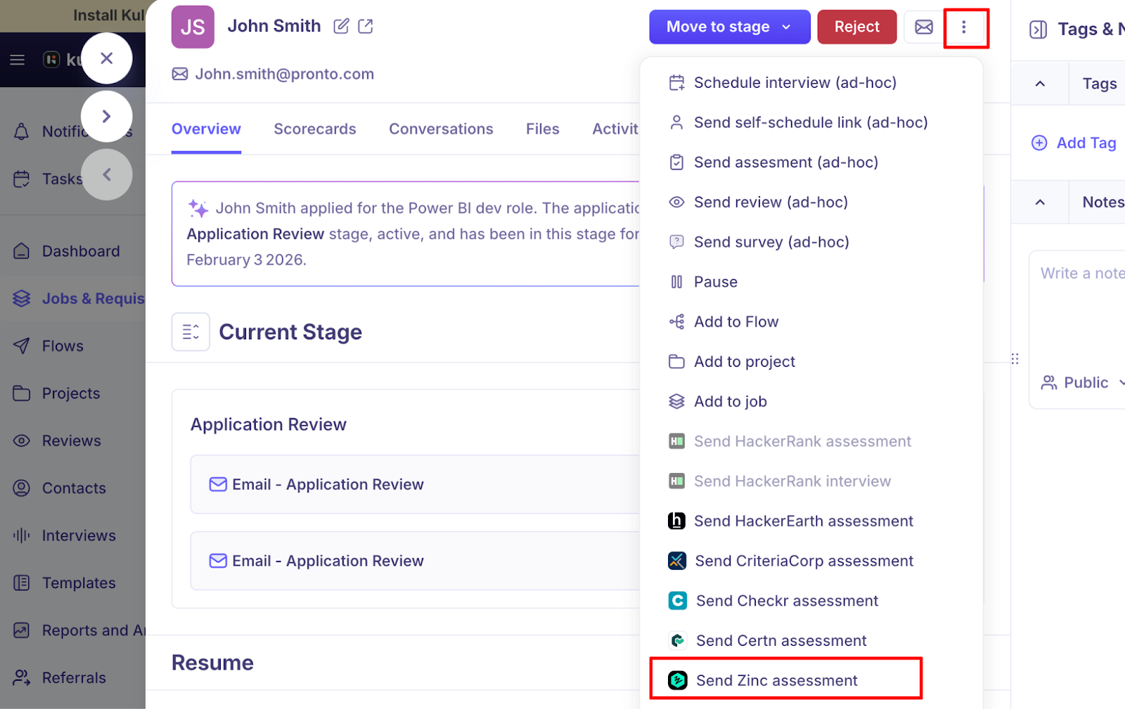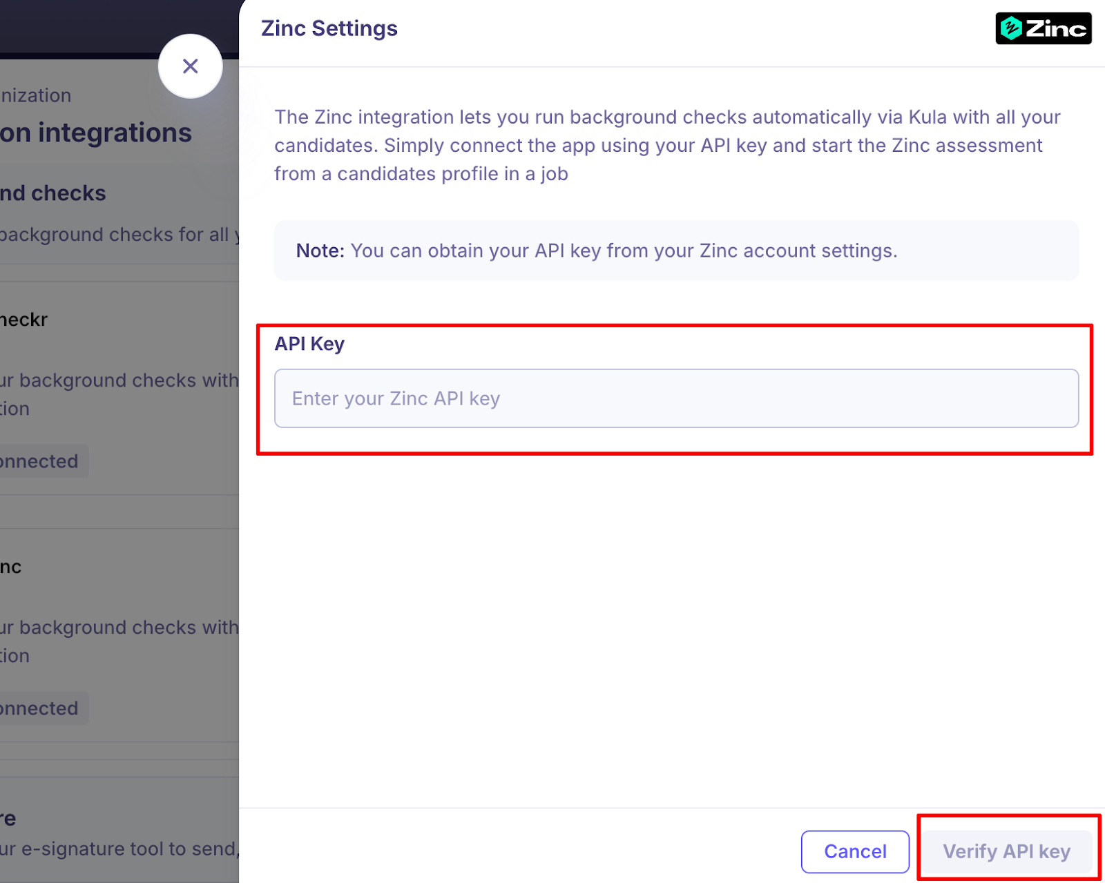 The Zinc integration with Kula allows users to automate background verification checks seamlessly. Recruiters can initiate checks directly from a candidate's profile within a job and monitor the entire verification lifecycle directly through Kula and without switching platforms.