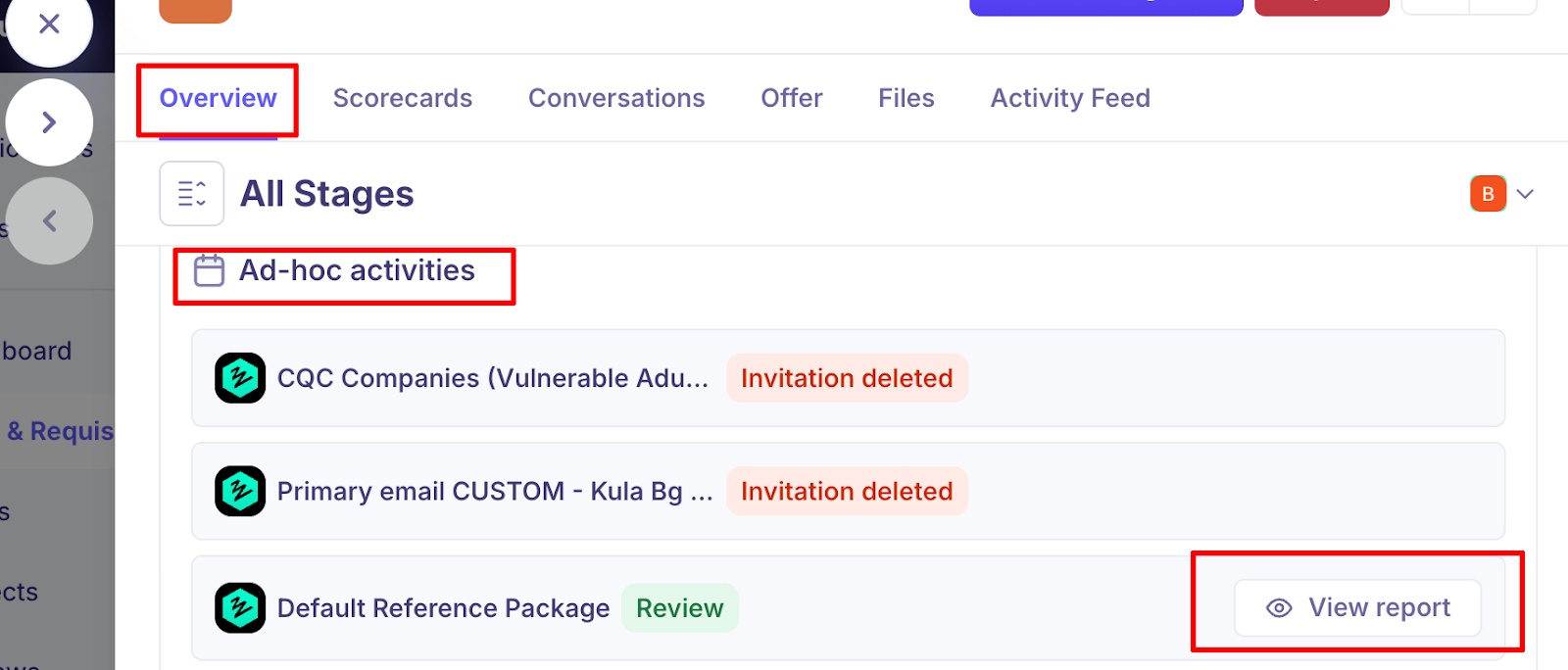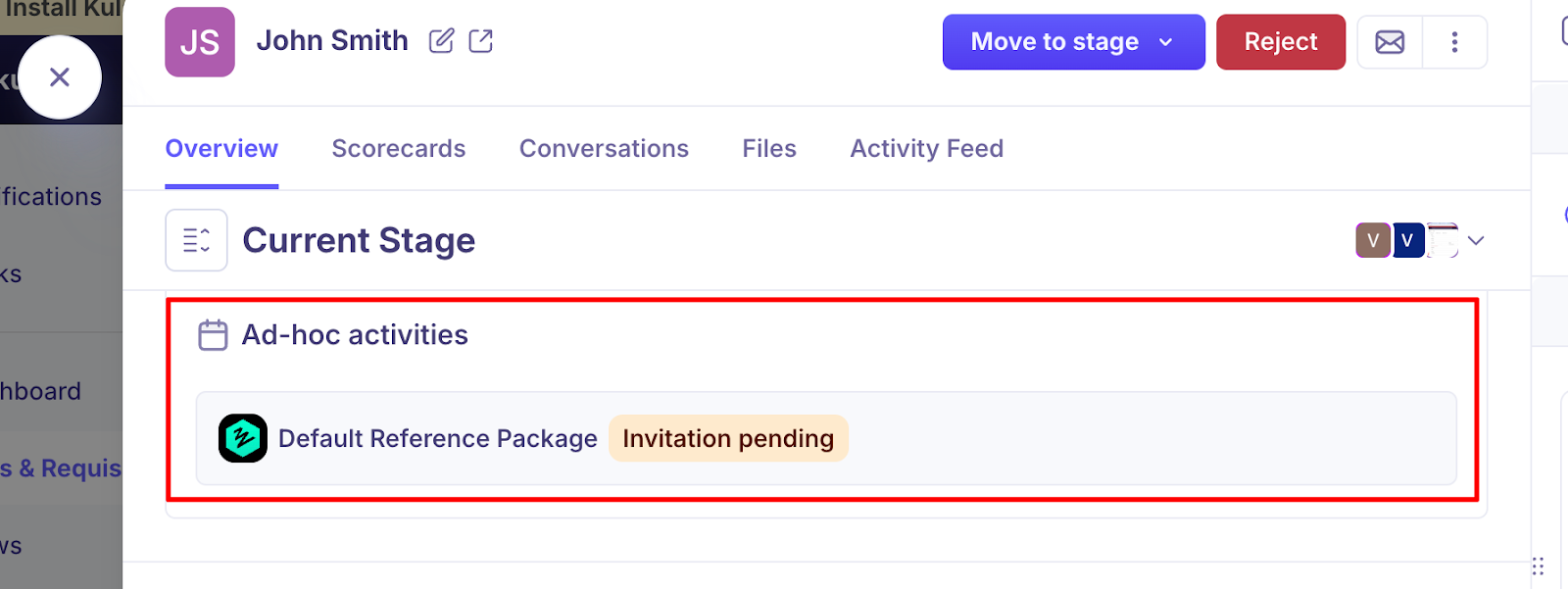 Once sent, the activity will be logged under the candidate's “Ad-hoc activities” with “Invitation Pending” status.