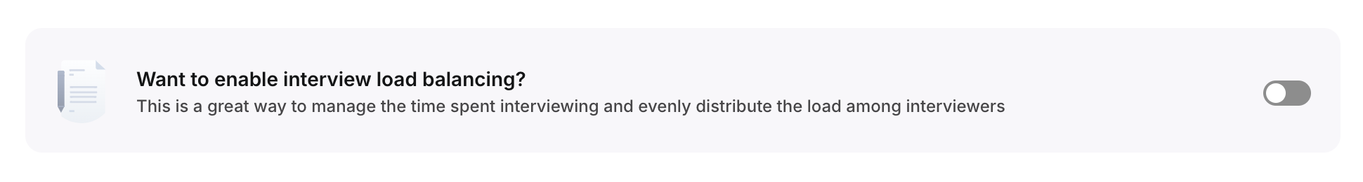 A prompt will appear to enable interview load balancing to manage interview time and distribute the load among interviewers.