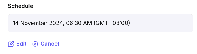 After scheduling, you can edit or cancel the email by selecting the Edit or Cancel icon.