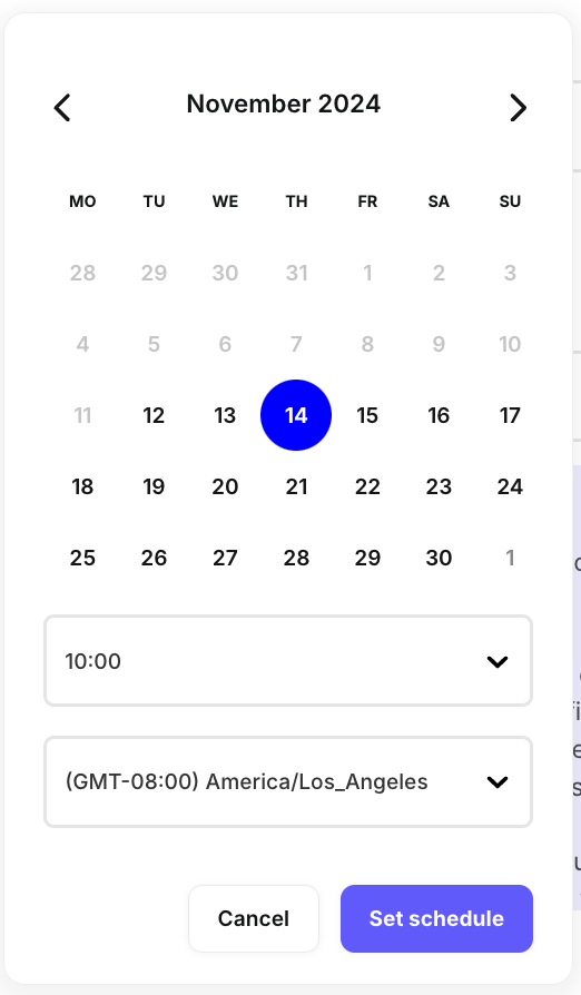 Click the Set schedule link to choose a date, time, and time zone.
