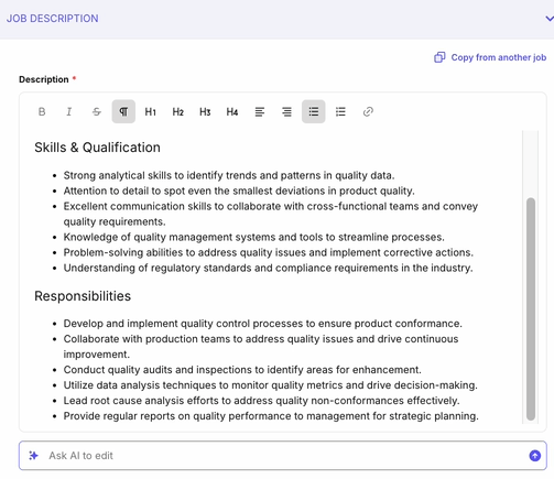 Select “Copy from Another Job”: Choose an existing job description that closely matches the role you are hiring for.
