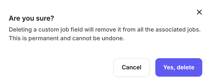 A confirmation modal will appear. Click on the "Yes, Delete" button to confirm and delete the field.