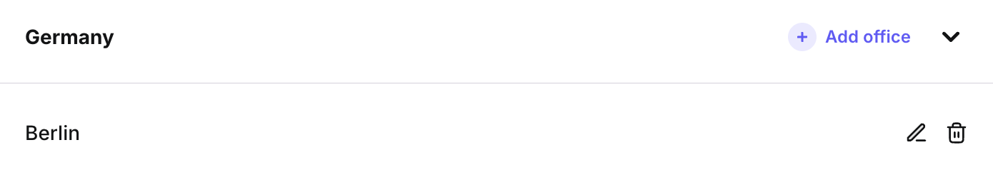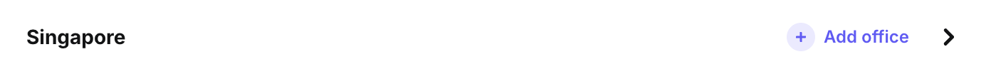 To add more office locations under a country section, click the Add Office button in that section on the Offices homepage. Then, follow the previously outlined instructions to complete the setup.