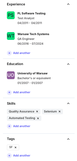 Tags: Custom tags that help categorize and organize candidates based on specific criteria relevant to your hiring process.